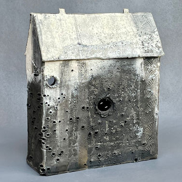 clay, shot with .22 long rifle & birdshot, saggar fired in gas kiln